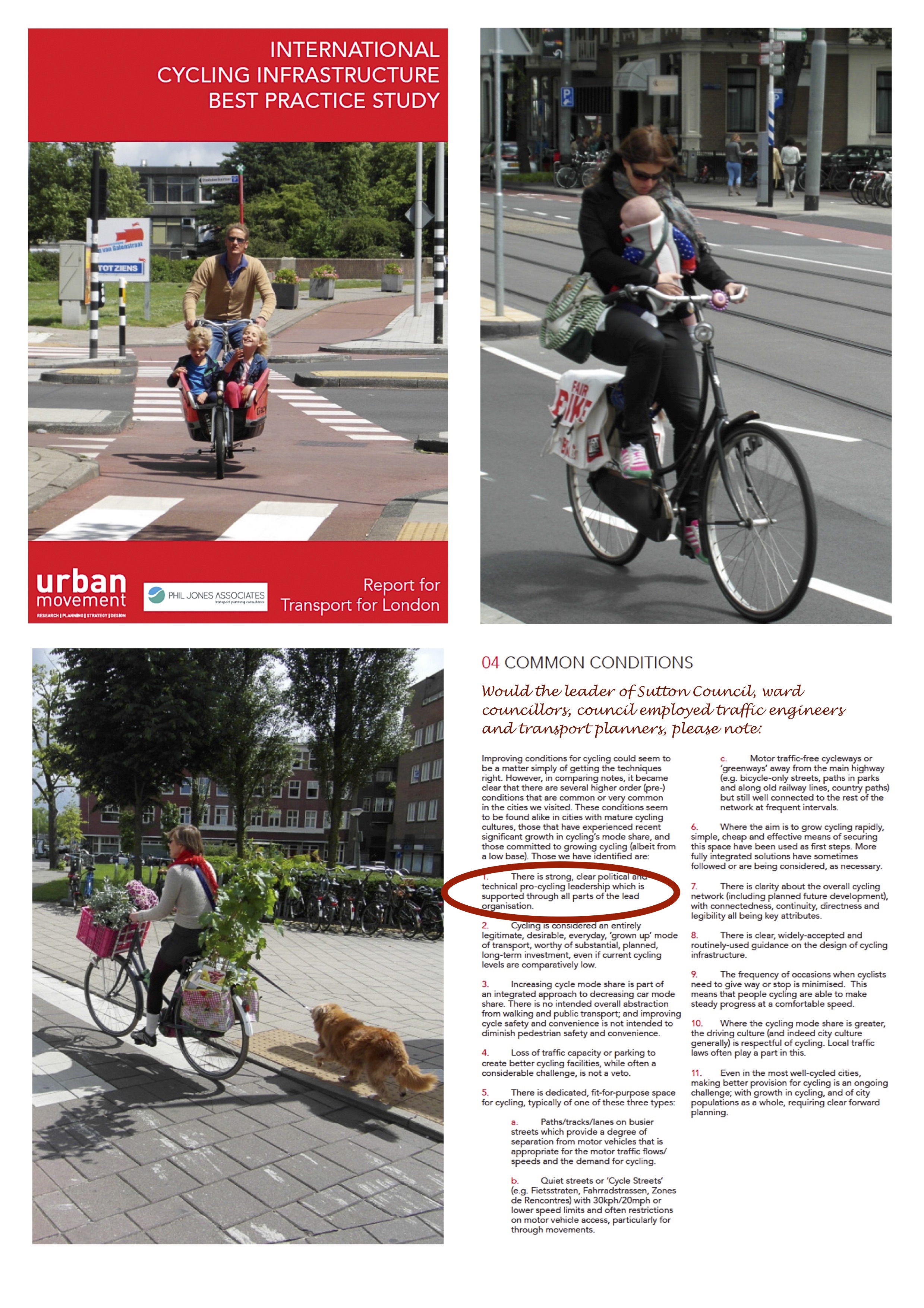 Top of the list of common conditions is “strong, clear political and technical pro-cycling leadership which is supported through all parts of the lead organisation”. It’s not new of course, political leadership formed one of the key recommendations from the Get Britain Cycling inquiry that reported in 2013. But it’s good to see that, even in terms of the delivery of cycling, it goes beyond being just a theoretical judgement, or “something that is worth having, but does not really matter”. It’s essential. Therefore, in the local context, before Sutton can “get cycling” (in terms of enjoyable, stress-free transport for many more people and better places for everyone) it will be necessary for Sutton’s councillors and traffic engineers to “get cycling” (in terms of aspiration, understanding and assessment of proposals).