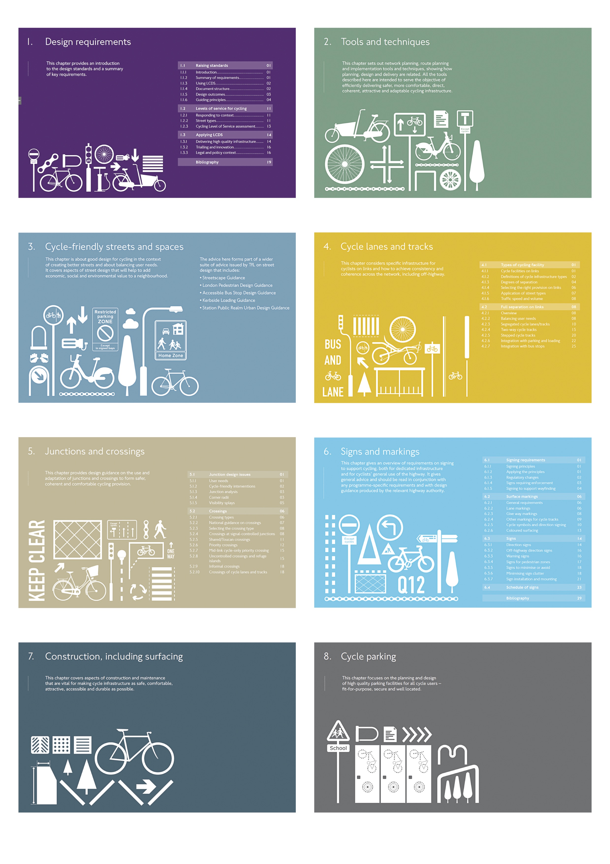 Eight comprehensive chapters contained within the London Cycling Design Standards (2014 edition). The individual chapters can be downloaded from Transport for London.