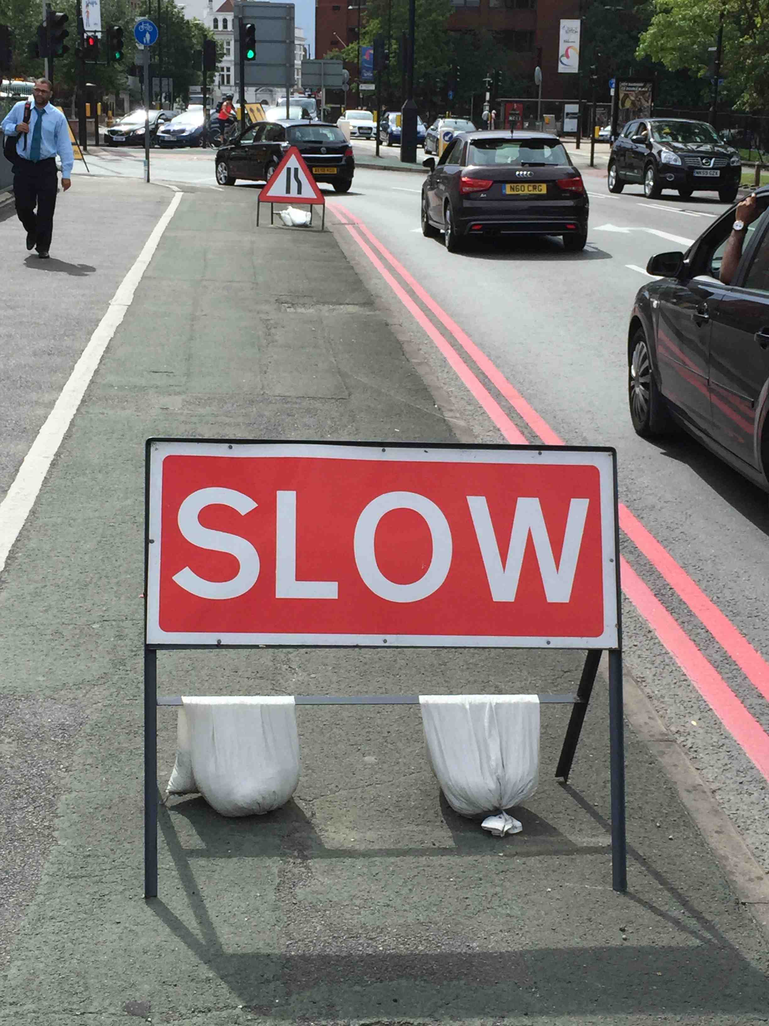 This is the two-way cycle lane outside B&Q, on the A232- the main east-west route through Sutton – on August 8 2015.