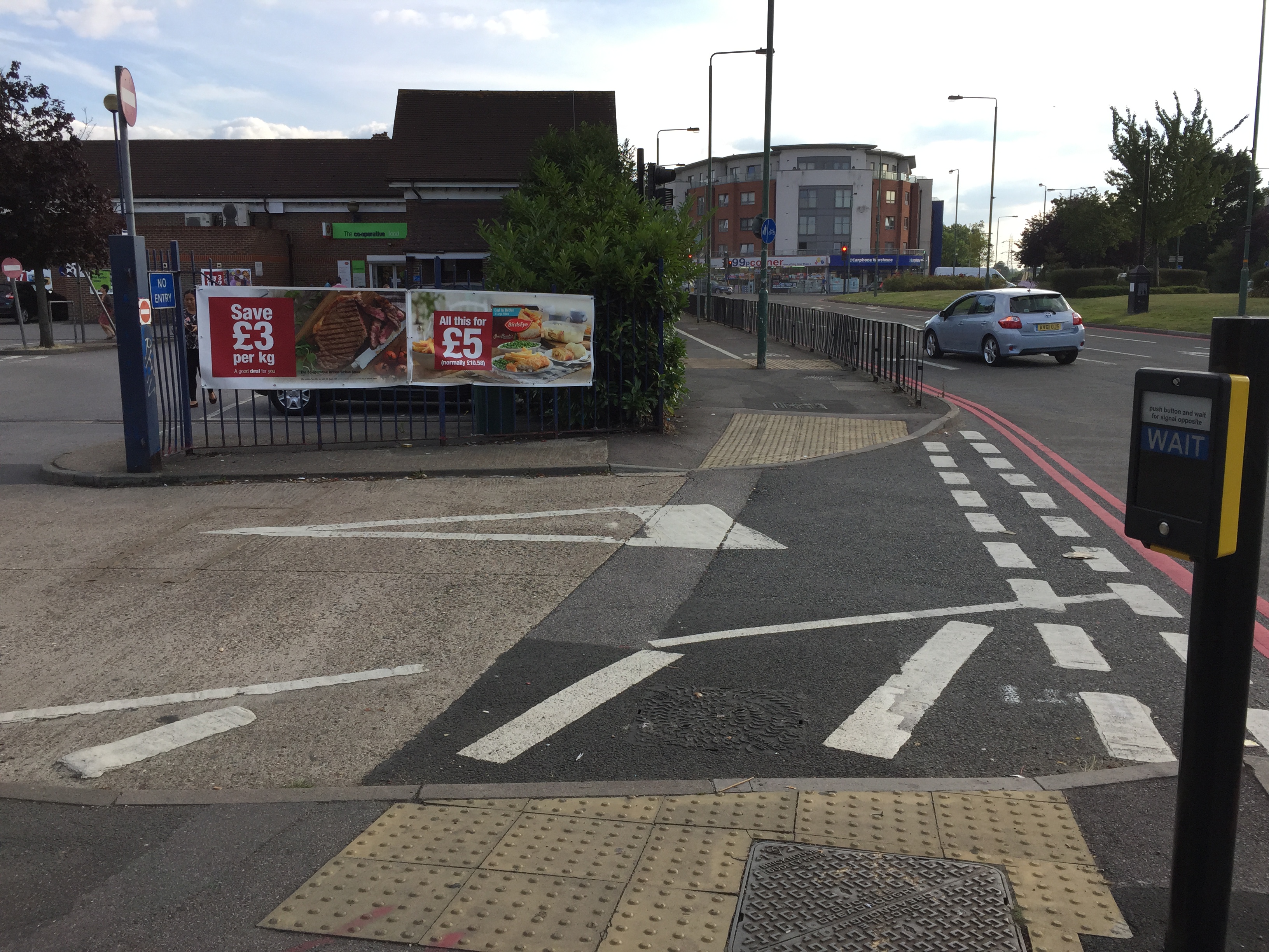 (2) Robertsbridge Road [Google Maps Street View]: Despite not being a particularly busy road (although carries more traffic than should, and is a rat-run), cycling here can be stressful due to usable width (with parking one side) and drivers impatient to pass. A high quality cycle path adjacent to Robertsbridge Road (east side) would greatly assist this street upgrade to Quietway status (currently London Cycling Network route 29). Unfortunately, the existing Arena fence restricts available width at one point to just 1m. Consideration should, frankly, be given to moving the fence. A cycle path would not need to be fully segregated, but raised up from carriageway with 45 degree kerb separation. As with all future cycle paths, the surface needs to be at least as smooth as the carriageway it is replacing. Alternatively, the road could be considered for closure to through traffic. Electronic bollards could allow the S3 bus and emergency vehicles access (as shown in this Steetfilms video made in Cambridge: http://road.cc/content/news/160103-new-video-streetfilms-explores-cambridge-britains-cycling-capital).