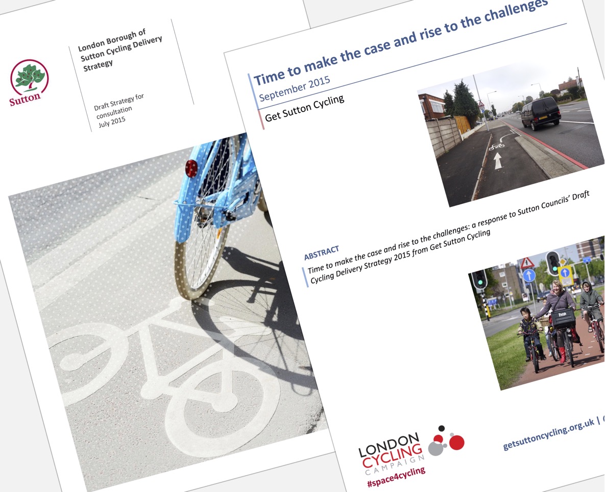 ‘Time to make the case and rise to the challenges’, is the title given to our response to Sutton Council’s draft Cycling Delivery Strategy 2015. The response was submitted on 7 September, the last day of the six-week consultation period. The full document can be downloaded from the link at the end of this post, and both the response and the draft strategy are available from our Publications page.