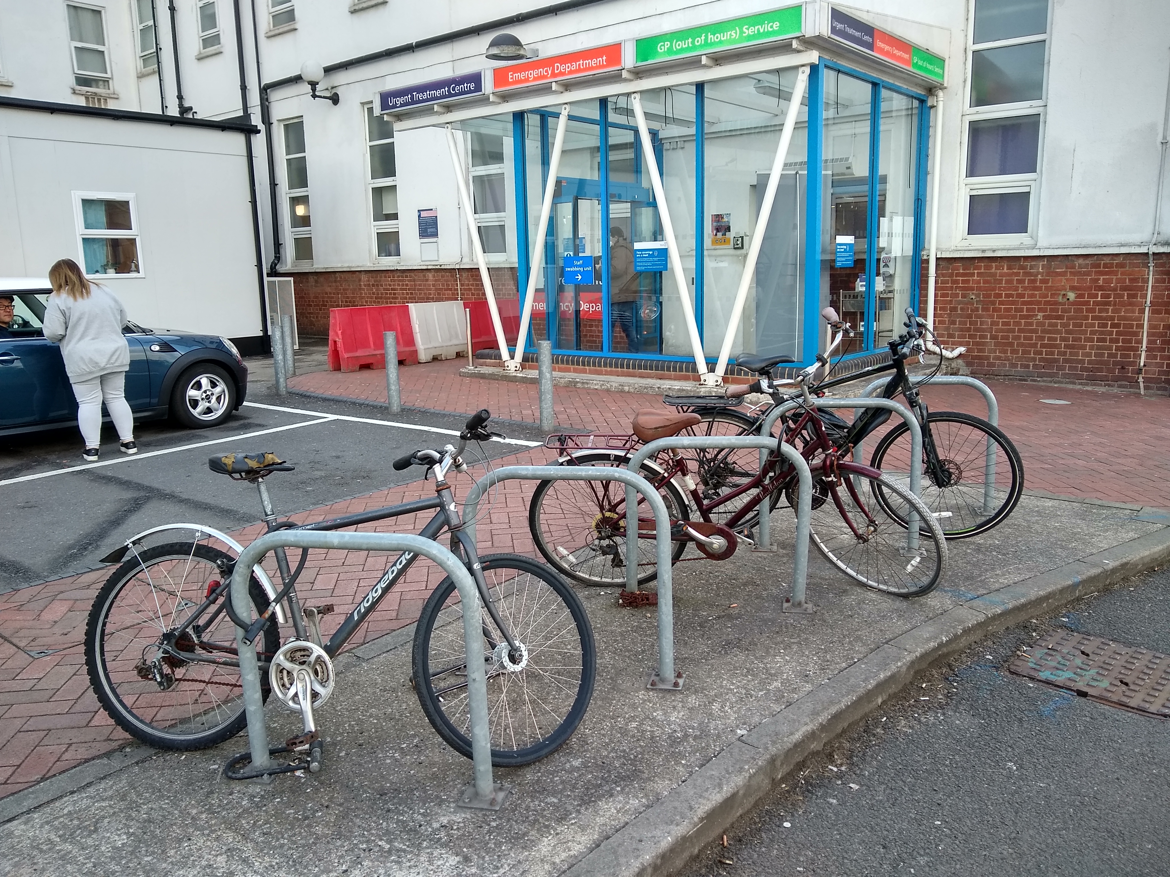 Any information about, and photographs of, hospital cycle parking would helpful, notably examples of good installations (like the recently installed secure shed and storage at Hillingdon hospital) but also examples of poor or insecure facilities. It would also be useful to know if there are sufficient stands for staff, and patients/visitors – full stands at this time of year are obviously an indication that there is in-sufficient parking.