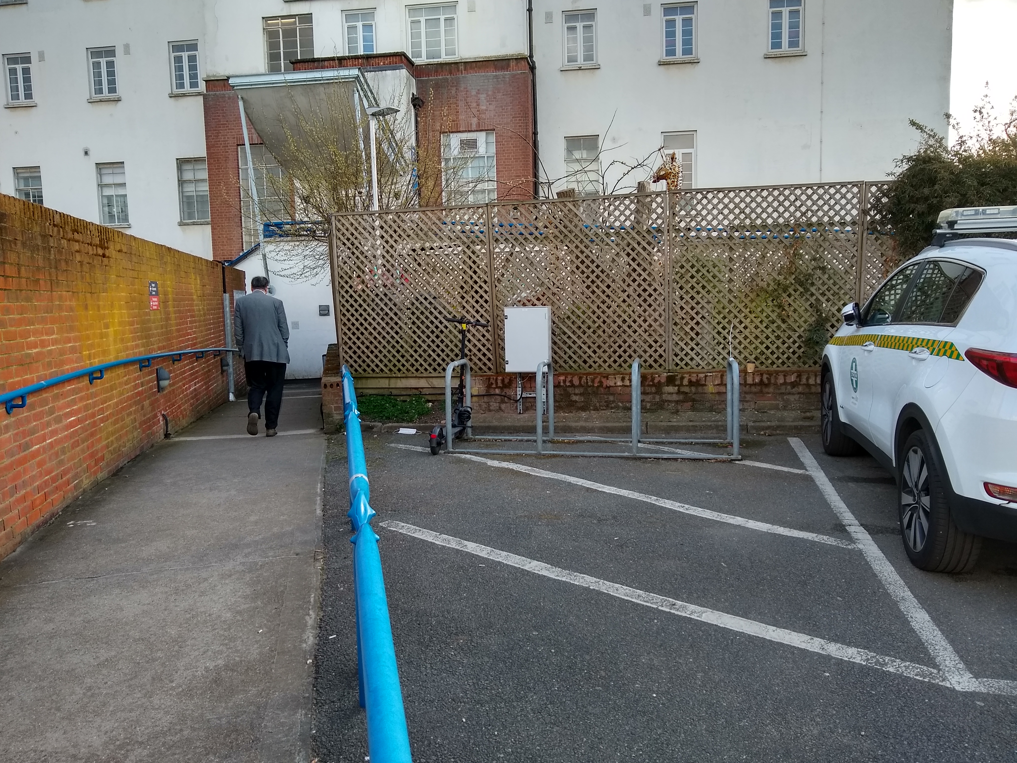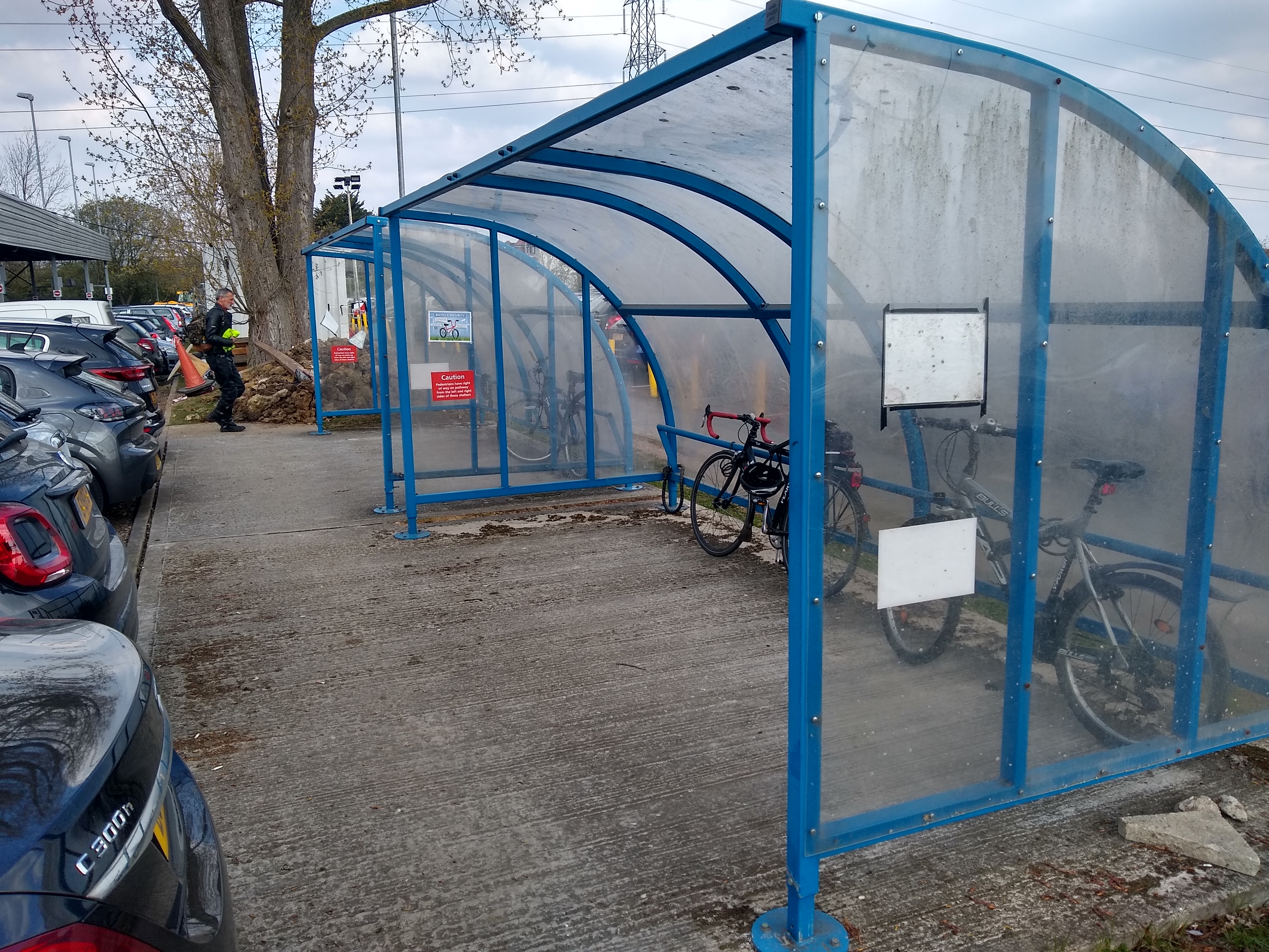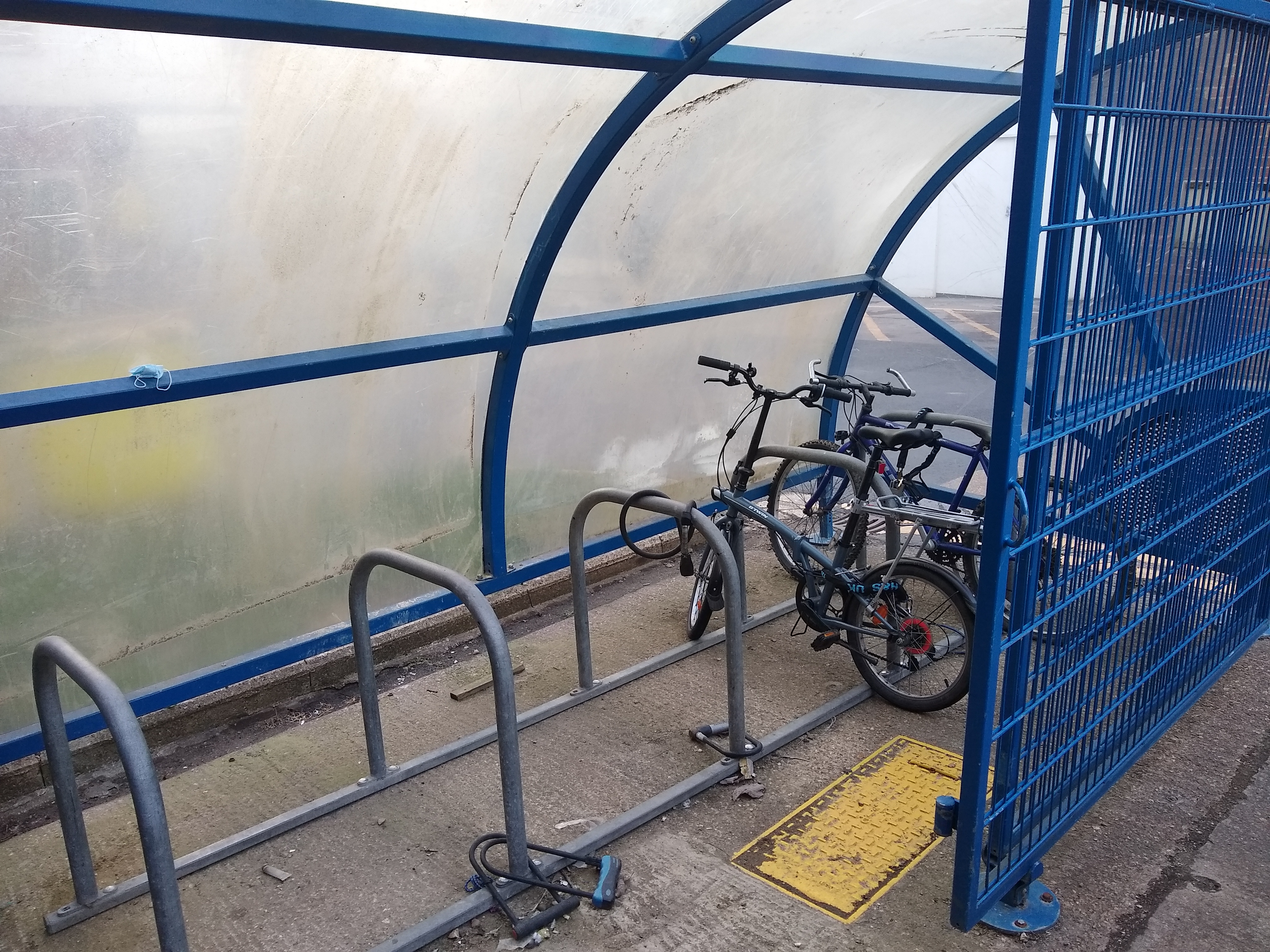 Above images taken 12th & 21st April 21 (Marcus Howarth). Seeing a number of parking options, some covered and one with a security door, though not sure how that works, a shared key? There are two covered hangers in the car park without sheffield stands so capacity could be added there in future.
