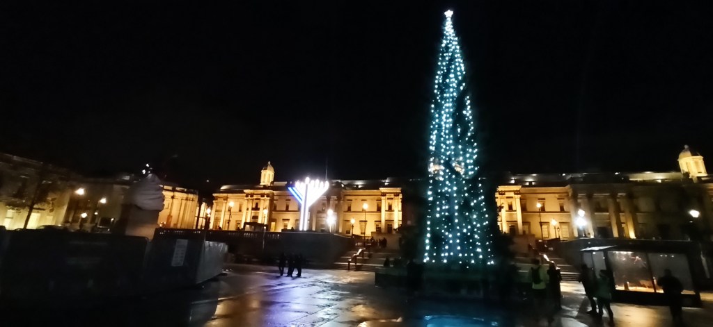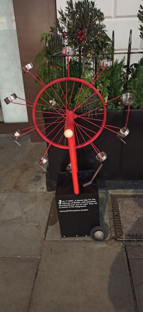 After a look at the Christmas lights around Oxford street, Regents street, and Covent Garden, we departed from Wellington Street and felt the pinch of Waterloo bridge. Space given to walking leaves one lane which could be described as the valley of death…