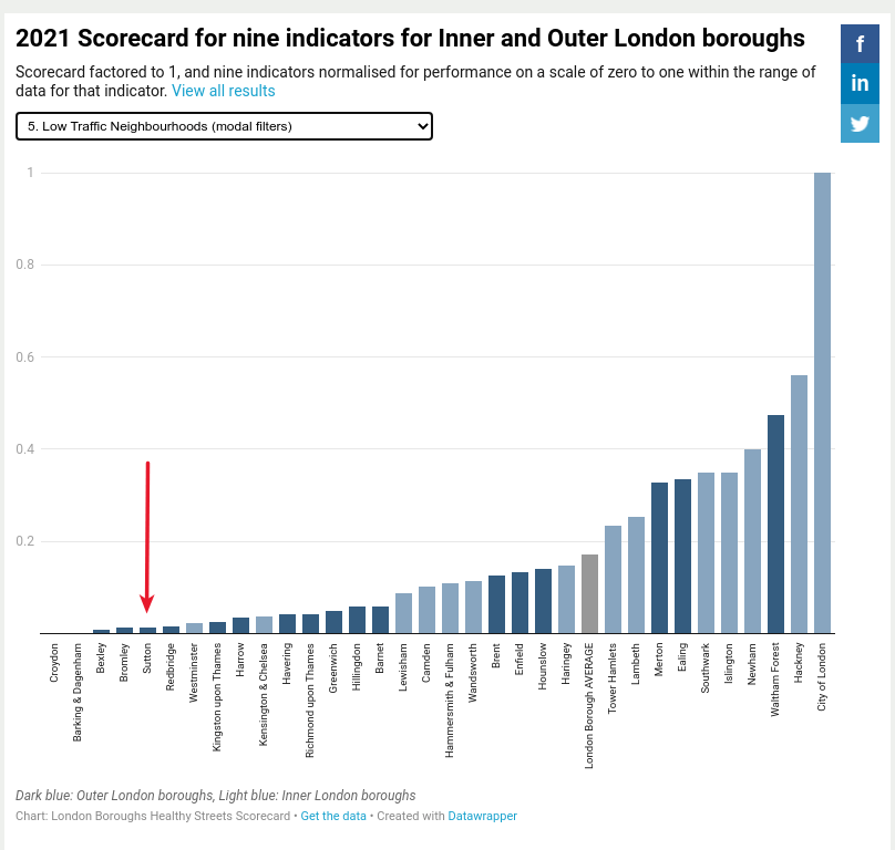 The recently published Healthy Streets score card results. unfortunately show Sutton ranked near the bottom of Inner/Outer London boroughs.