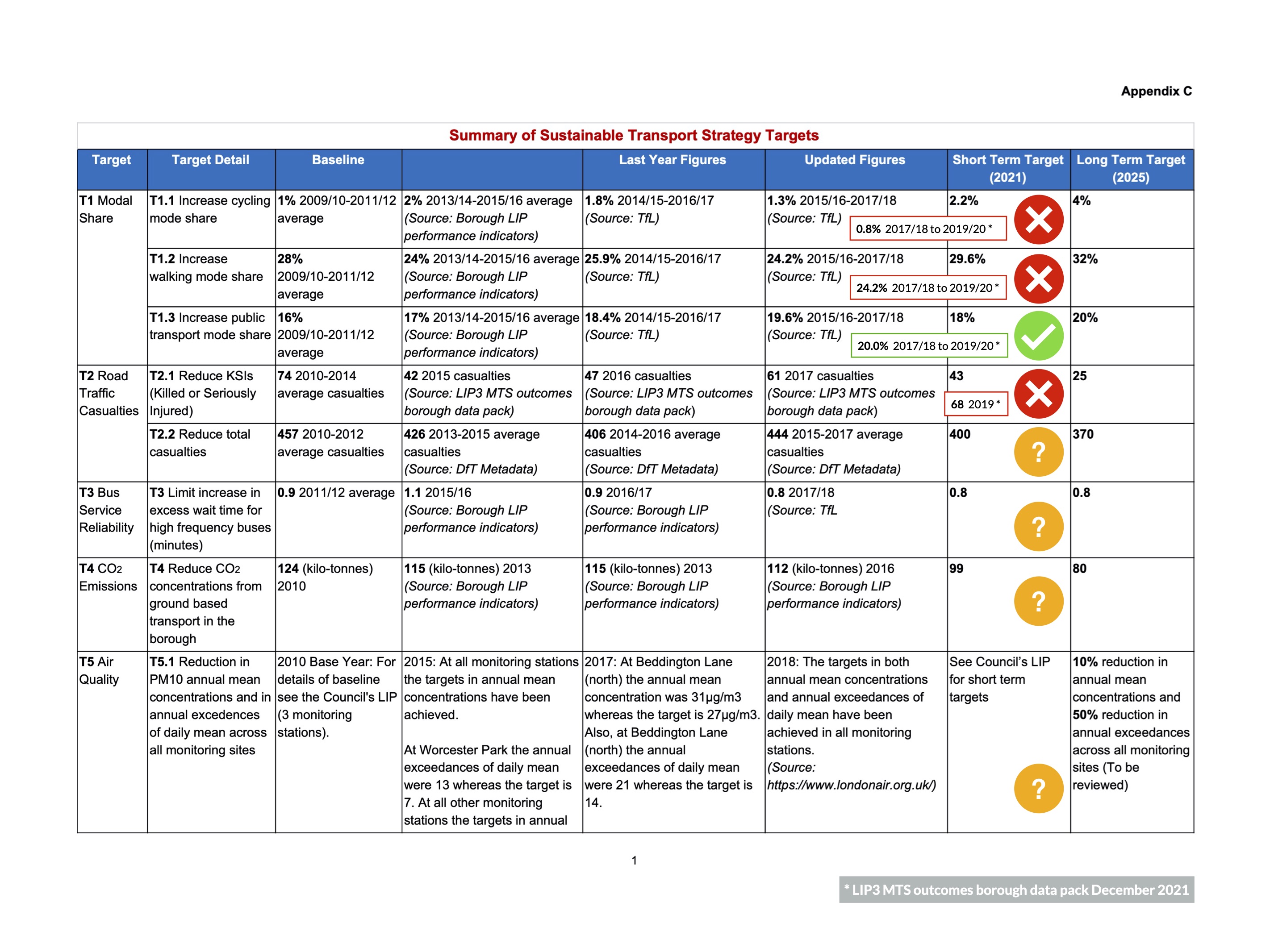 - Appendix C Summary of Sustainable Transport Strategy Targets (2015/16-2017/18)