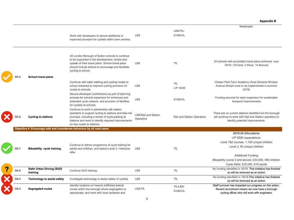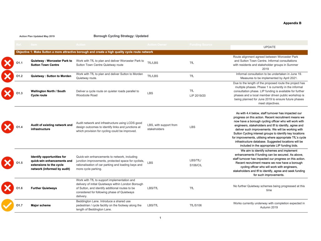 - The failure to develop a Sutton Cycle Network Plan (borough audit), a proposal originally announced to the Cycle Forum in April 2018