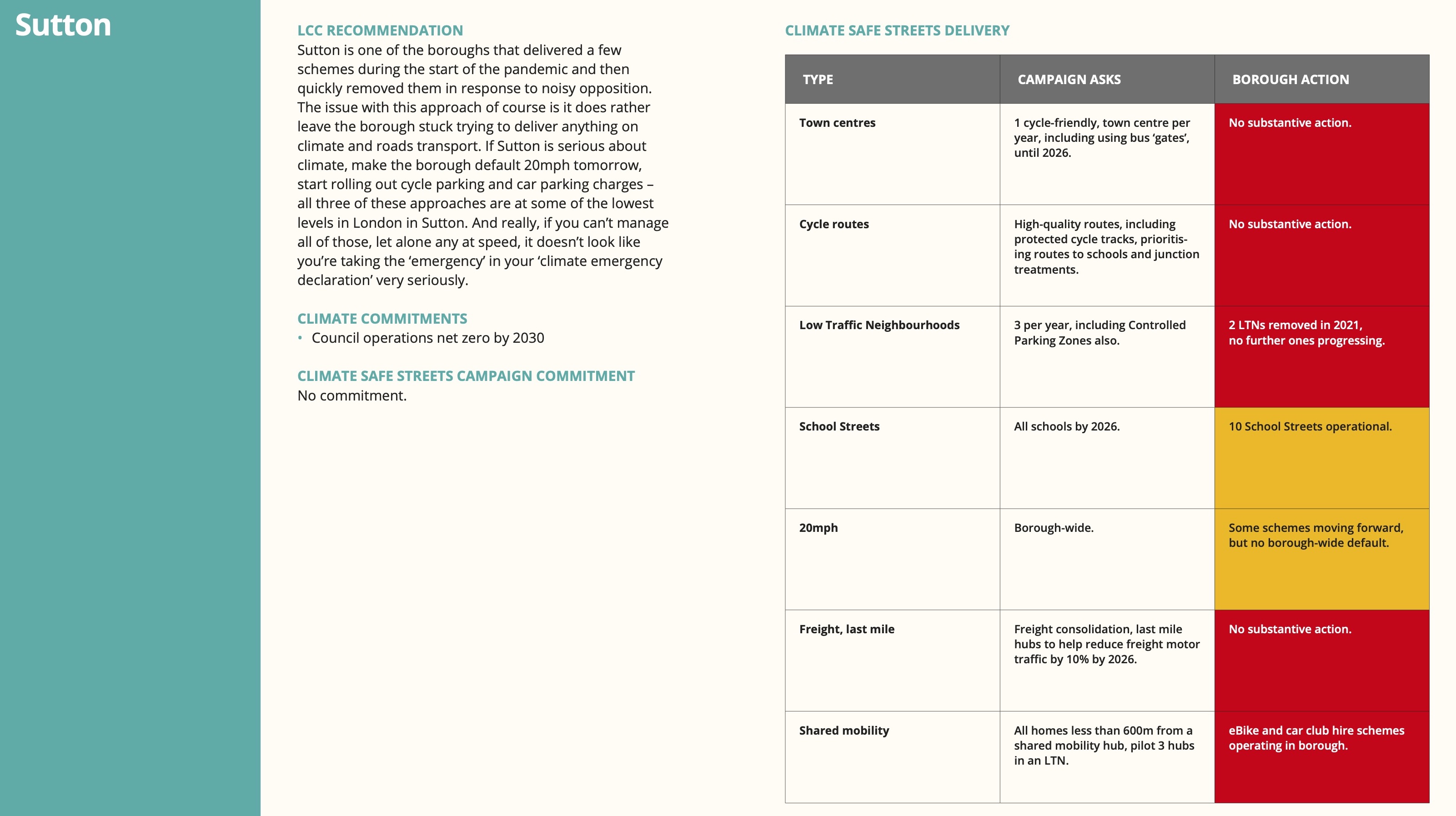 Note that the table included here differs slightly from that presented in the ‘Climate Safe Streets: One Year On, One Year To Go’ report: see Annex for details).