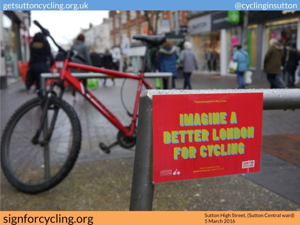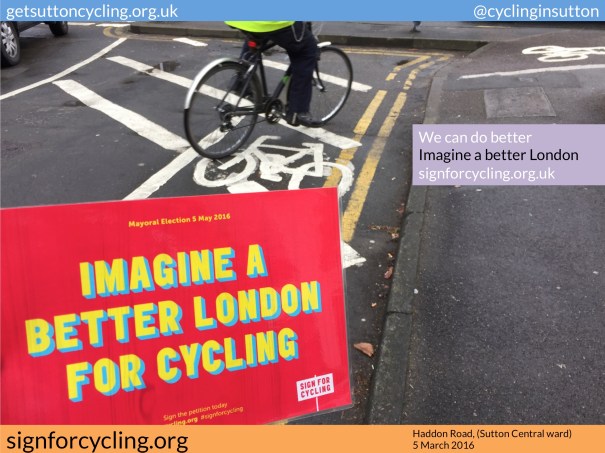 Weren’t they supposed to stop blocking cycle lanes with signs? Wasn’t that part of their cycling strategy? Or do the pictures say it all with regard to Sutton’s vision for cycling? Sutton’s Cycling Strategy (November 2015) is available to download…